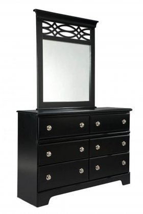 This attractive Carson Six Drawer Dresser with Panel Mirror by Standard Furniture will add dimension and refinement to any room Ample storage featured on the dressers six drawers help keep a tidy room Cast metal knobs in a bright nickel color finish ... Read more...